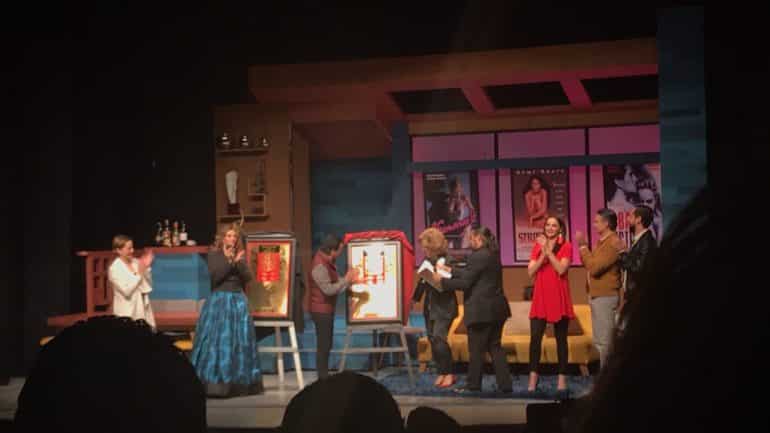 En la develación por las 300 representaciones, subió al escenario Angélica María, quien comentó al productor: “Te conocí chiquito, viste todas las representaciones nuestras en teatro, por eso sos de lo mejor que hay”. Sergio Gabriel por su parte le confesó: “Yo aprendí amar y a respetar el teatro gracias a tu madre”.