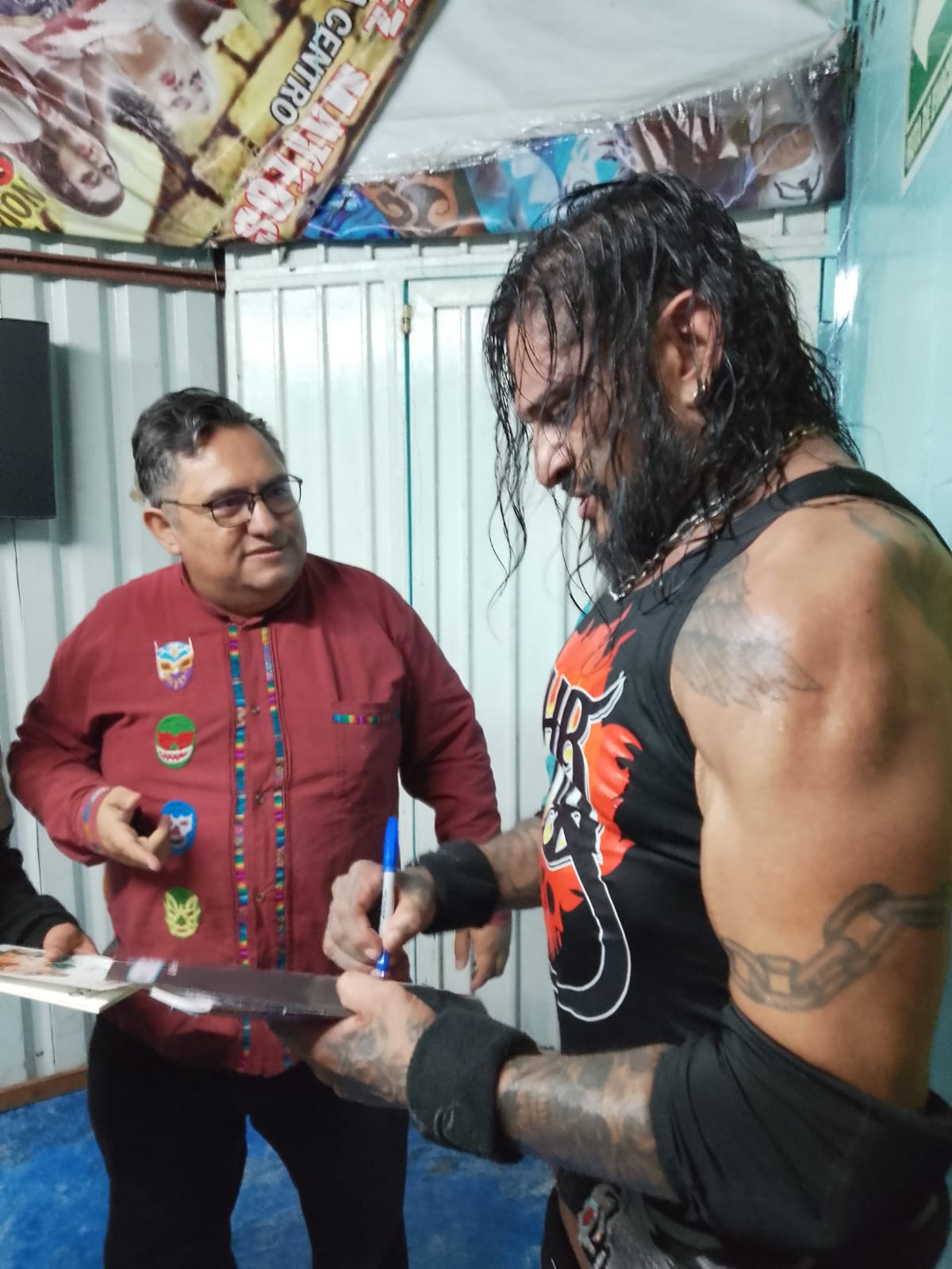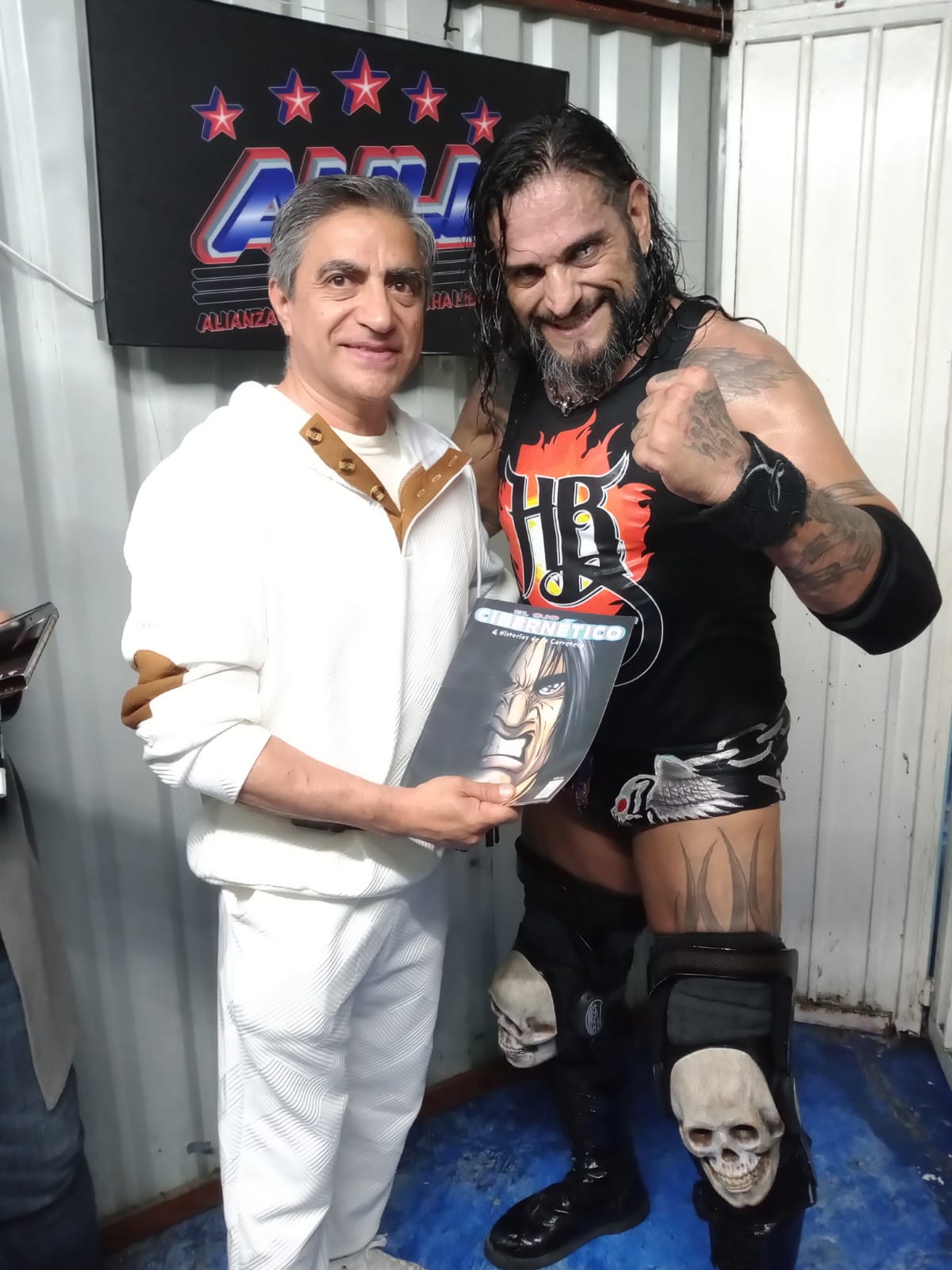 Aprovechando la ocasión, pudimos charlar, el “Dios de la lucha libre», quién se mostró conmovido al poder tener de nuevo en sus manos un cómic realizado hace casi 18 años años. Y en entrevista exclusiva, habló de sus grandes rivales como Perro Aguayo, Canek, el hijo del Can Nochistlán y claro El Mesías, por los que siente un profundo respeto por todos. Así mismo nos confesó que los Hell Brothers están más vivos que nunca, que él seguirá trabajando por fechas con AAA, así como con los independientes, mientras TKO/WWE no le den otra indicación, comentó que le gusto mucho la camiseta que pusieron en su tienda oficial a la venta, que ya hay Ci-ber-né-ti-co para rato.