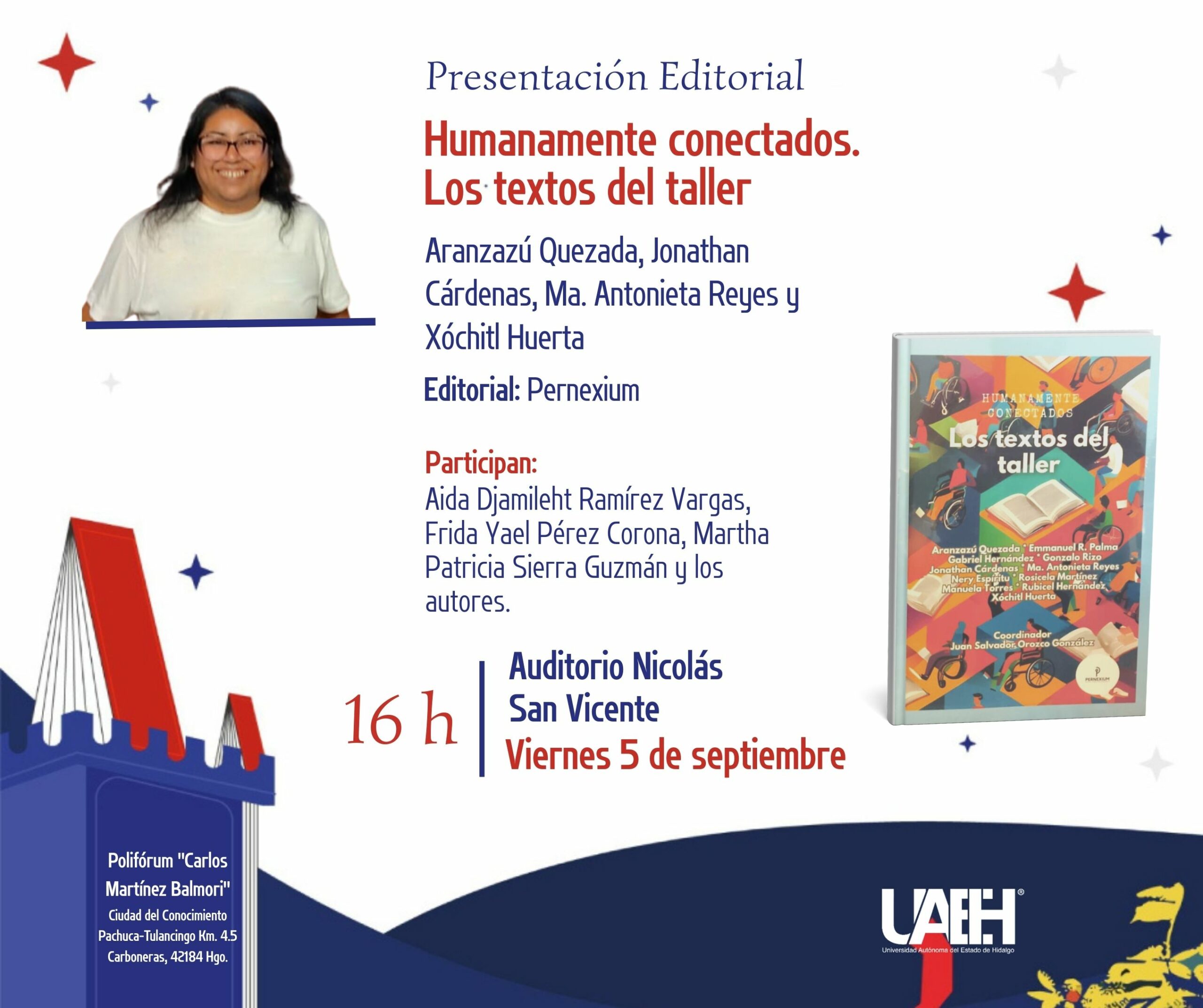 Las actividades tendrán verificativo en los auditorios, Josefina Quintanar, Margarita Michelena, Biblioteca Central y el Auditorio Nicolás García de San Vicente del Polideportivo Carlos Balmori ubicado dentro de la Ciudad del Conocimiento de la UAEH, en el Mineral de la Reforma, Hidalgo, municipio vecino de la capital Pachuca de Soto. La entrada a la feria es libre y gratuita.