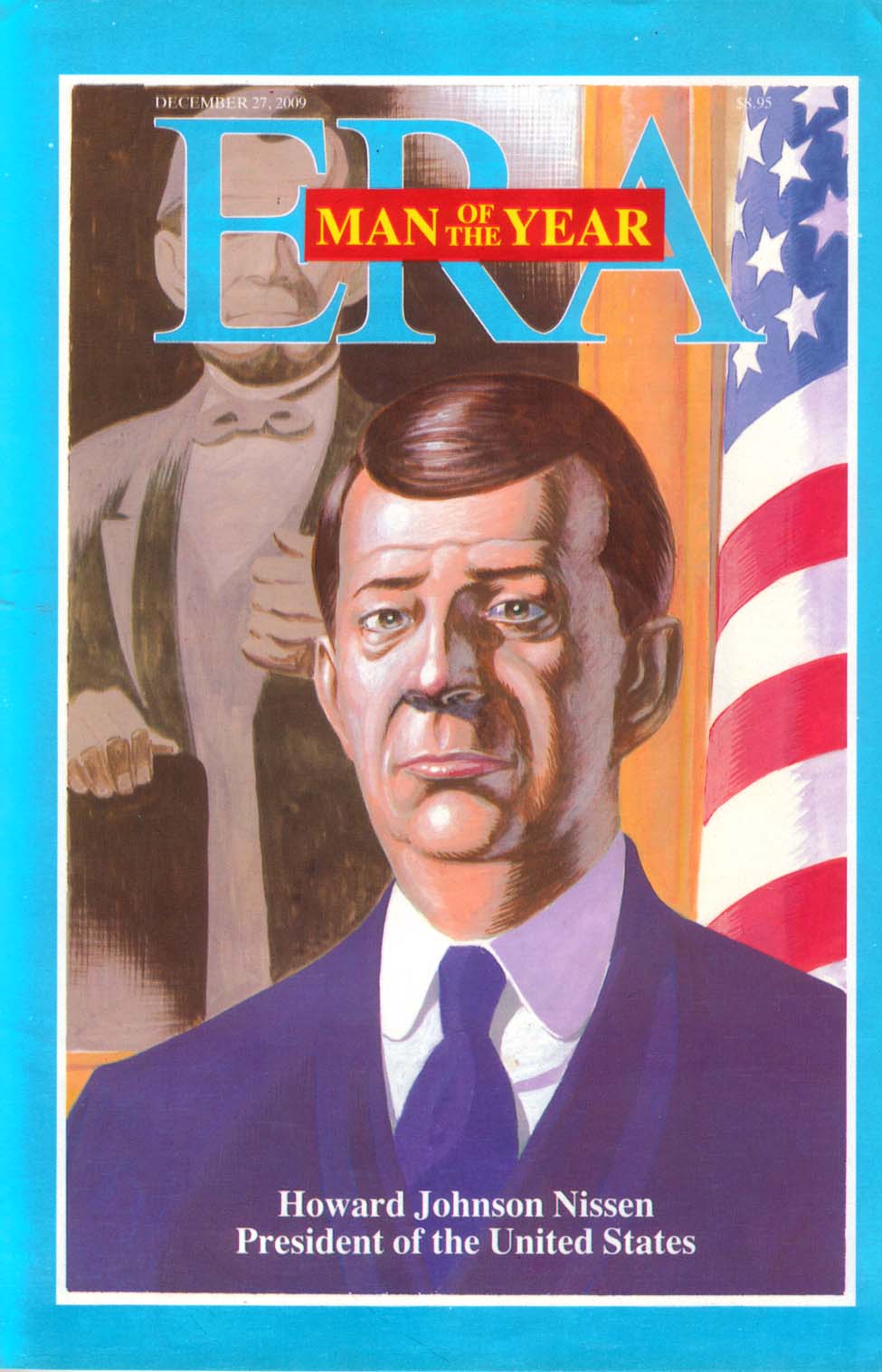 El 27 de Diciembre del 2009 la revista ERA publicó un número especial nombrando «Man of the Year» al Presidente de los Estados Unidos: Howard Johnson Nissen, un demócrata liberal , ambientalista militante, anteriormente secretario de agricultura suplente, pero después de que el 5 de mayo del 2009 una bomba saudita redujo a cenizas a la Casa Blanca incapacitando al anterior presidente, el republicano recalcitrante Rexal y dejando a todos los miembros de su gabinete muertos, a todos menos a uno. Howard Johnson Nissen, que se encontraba en su casa con fiebre durante el atentado y el ahora flamante presidente de los Estados Unidos que rescató al país de los desastres y las estupideces que el anterior presidente republicano habia realizado, es designado hombre del año.
