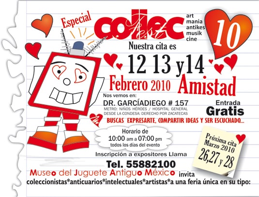 Además los invitamos al evento del 12 al 14 de febrero del año en curso en la sede el Collecfest, el Centro Cultural MUJAM, Dr. García Diego 157. Colonía Doctores, a unas cuadras del Metro Hospital General o Niños Héroes.